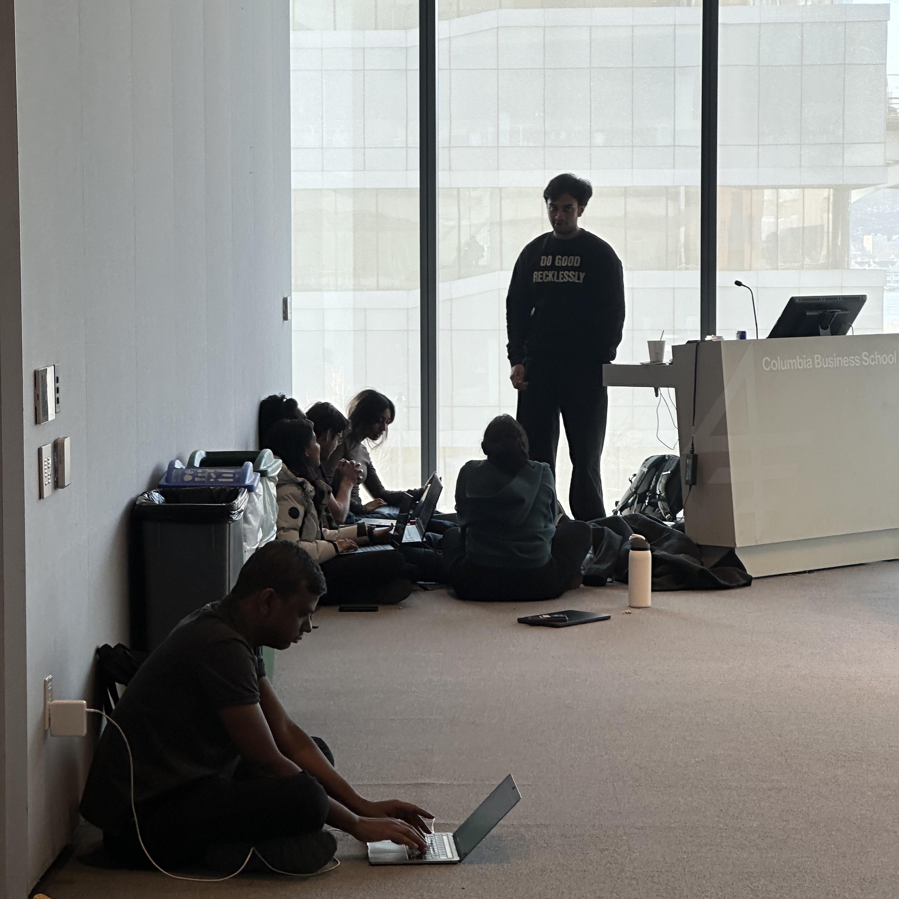 The venue mattered. Geffen Hall’s Board Room at Columbia Business School is where CBS hosts its highest-profile events — dean’s receptions, corporate briefings, advisory board meetings. Filling it with 300 hackers on a Saturday sent a clear signal: AI builders belong in these rooms.