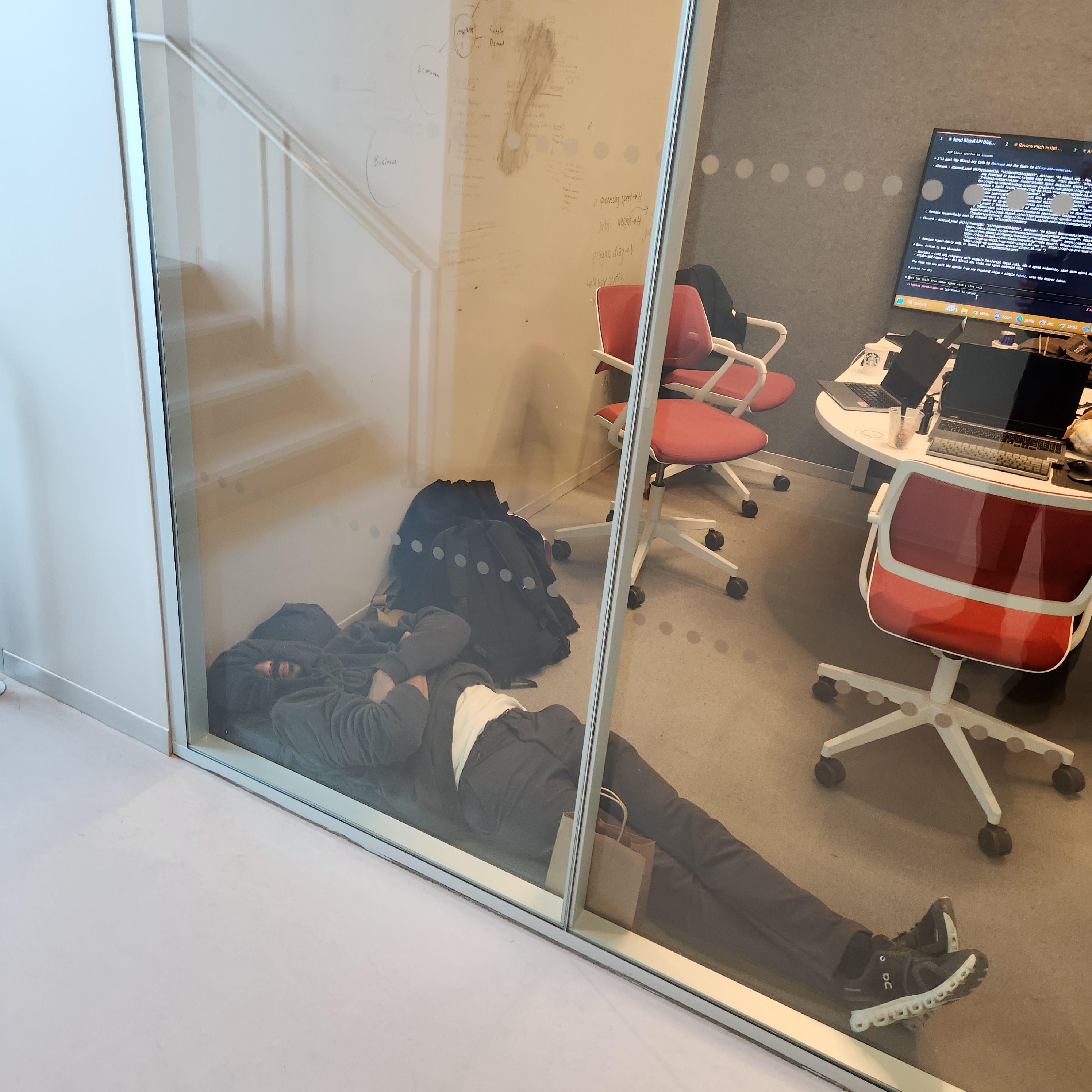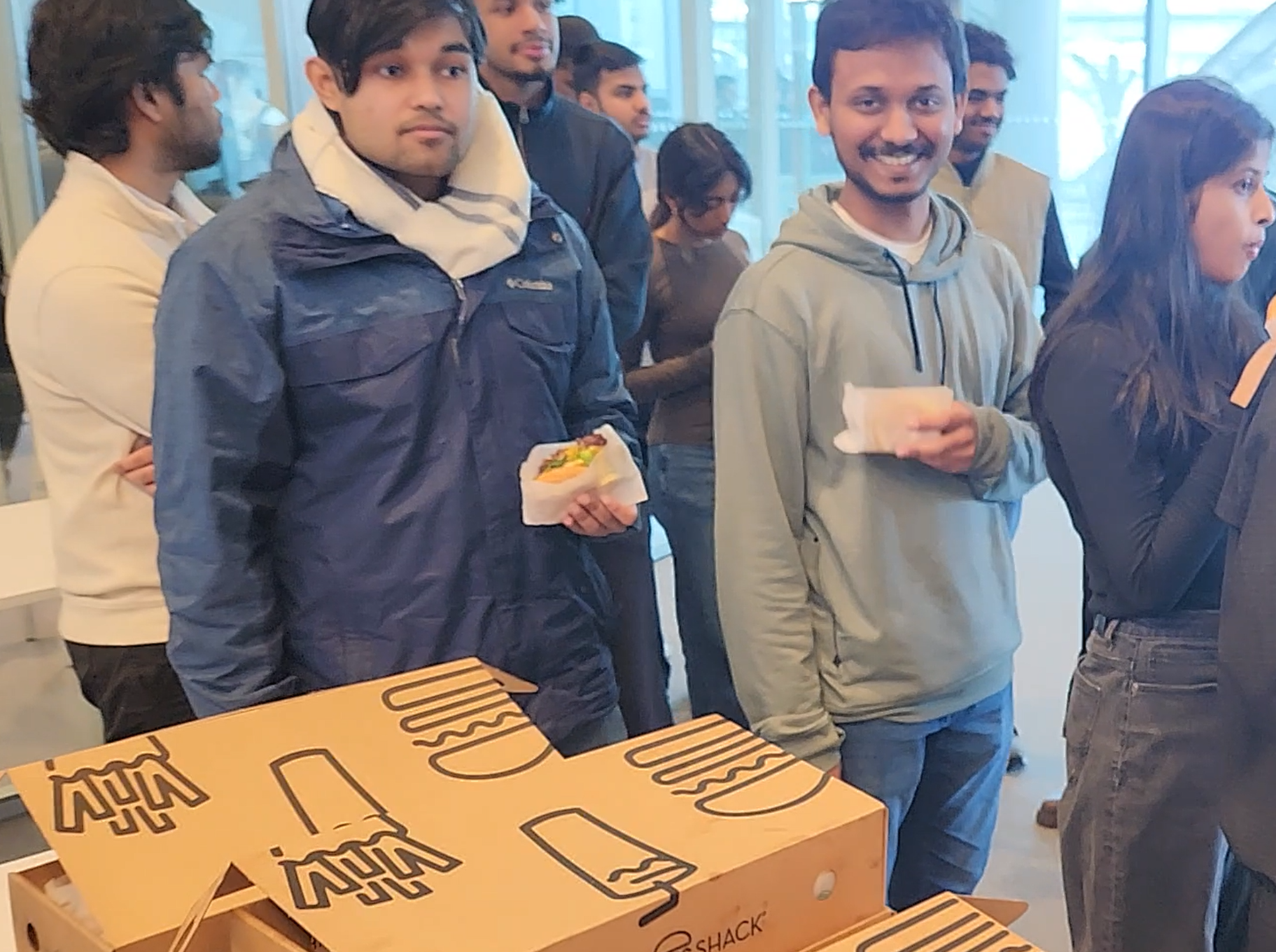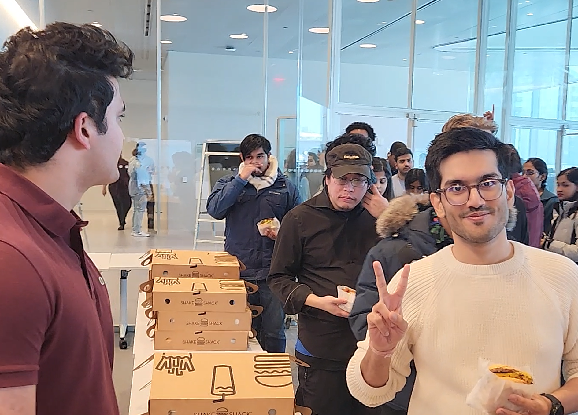 On the food and beverage side, we partnered with Shake Shack to cater 250 burgers for lunch and ChaHalo to deliver 200 milk teas for the afternoon push. Both were gone instantly — 300 people building nonstop for 12 hours generate serious demand.